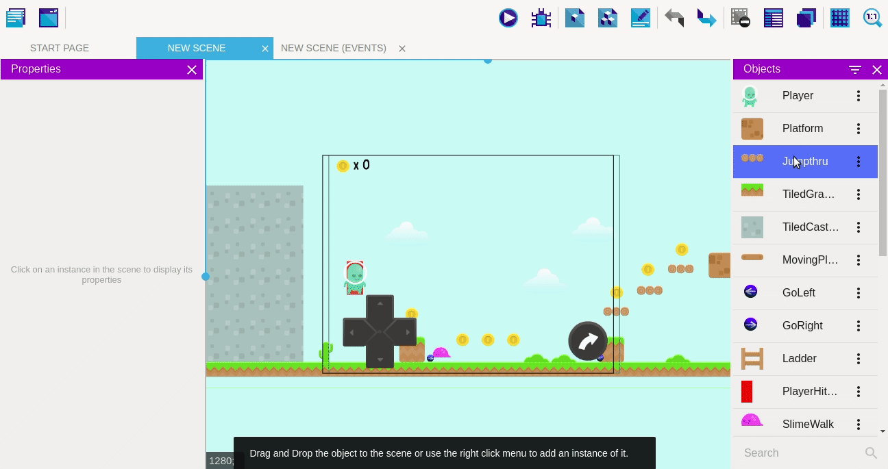 A new window will open that will show the different types of objects available in GDevelop.